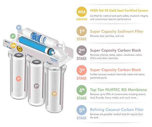 Highest grade 5-Stage ultra-pure system with 100% US Made, NSF certified filters to guarantee water safety & your health.