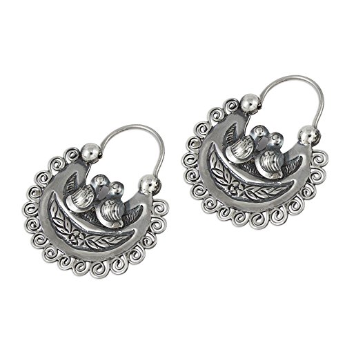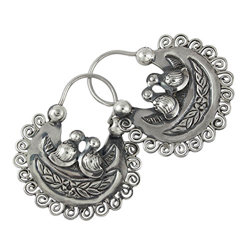 About this item: In Mexico's Mazahua community, birds are often a symbol of beauty. Mazahua Family artisans depict lovebirds in these handcrafted hoop earrings. They perch in a sterling silver nest surrounded with diminutive spirals. Most Mazahua women wear earrings in the shape of a half moon, as these are gifts from the husband in lieu of an engagement ring.