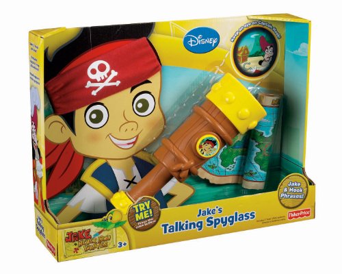 -. Binding : Toy -. Brand : Fisher-Price -. Color : multi/none -. Department : Unisex -. EAN : 7129985250255 -. Feature : Recreate your favorite pirate scenes with Jake's talking spyglass! / Hear Jake speak phrases with the press of a button! / Spy on Captain Hook with Jakes Spyglass! / Life Size telescope with Pirate styling allows for fun play time / Comes with Jake's headband and an authentic Never Land Map -. IsAdultProduct : 0 -. ItemPartNumber : W5271 -. Label : Fisher Price -. Manufacturer : Fisher Price -. Model : W5271 -. MPN : W5271 -. PackageQuantity : 1 -. PartNumber : W5271 -. ProductGroup : Toy -. ProductTypeName : TOYS_AND_GAMES -. Publisher : Fisher Price -. Studio : Fisher Price -. Title : Fisher-Price Disney's Jake and The Never Land Pirates - Jake's Talking Spyglass -. UPC : 885304832881 -. Warranty : No Warranty