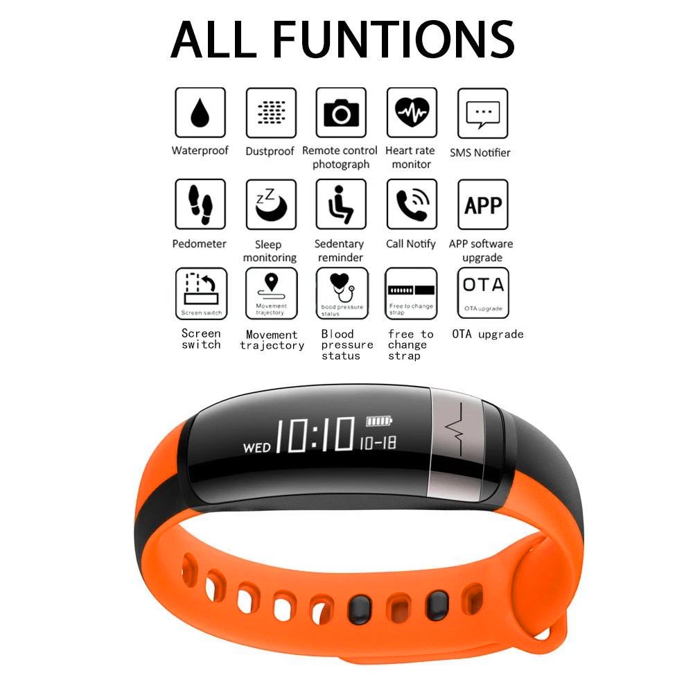 Function:Week,Speed Measurement,Message Reminder,Chronograph,Passometer,Activity Tracker,Alarm Clock,Countdown,Fitness Tracker,Blood Pressure,Call Reminder,Calendar,Remote Control,Sleep Tracker,Heart Rate Tracker,Social Media Notifications,Push Message
