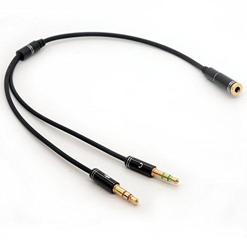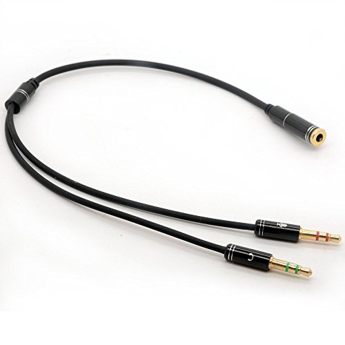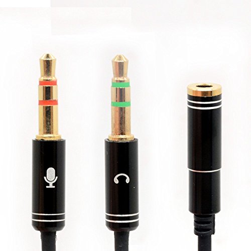 Features: - Input: 3.5mm 4-position female for headset or earphone - - Output 1: 3.5mm 3-positiion male for Headphone / Microphone Jack on your PC/Laptop - Output 2: 3.5mm 3-position male for Mic L/R Audio on your PC/Laptop -24K Gold Plated for better sound quality and less loss -Works with all PC Applications - Skype, MSN Mesenger, Yahoo, Google Voice etc Compatibility: Works with headsets that have 3.5 mm stereo plug -Cable Length 20cm