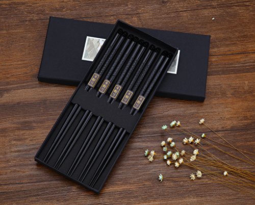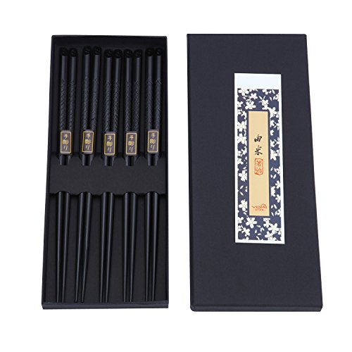 ZxU 5 Pair Natural Hardwood Wooden Japanese Chopsticks Set with Gift Box (Carved)