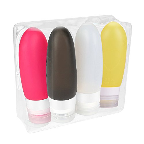 VASLON Leakproof Travel Bottles 3.3 oz 4 Pack per Set,TSA Refillable Squeezable Silicone Travel Containers and Protable Clear Travel Bag.