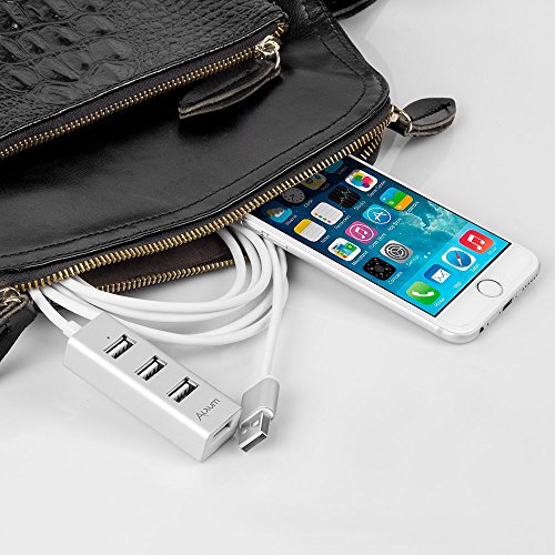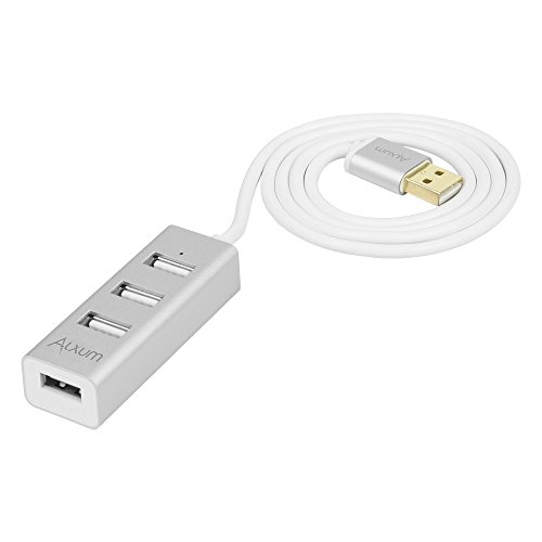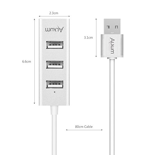 Alxum 4-Port USB 2.0 Data Hub with Power Port Built-in 80CM Long Cable for iMac, MacBook, MacBook Pro, MacBook Air, Mac Mini, Chrombook, Surface Pro, Surface Book, PC, Aluminum