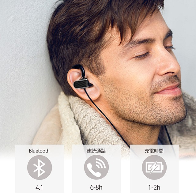 ■対応機種Bluetoothが使用できるパソコン、スマートフォン、タブレット、音楽プレーヤー【!】購入前にご確認くださいお手持ちの機器がBluetooth対応かご確認ください。対応機種のお間違いによる返品、交換は受けかねます。予めご了承下さいませ。■特徴連続通話時間:8時間充電時間:2時間感度:105±3db/mWインピーダンス:32Ω±15%再生周波数帯域:20Hz-20,000Hzチップセットモデル:Chipset model:CSR8635Bluetoothバージョン:4.1対応プロファイル:HFP1.6, HSP1.2, A2DP1.2, AVRCP1.4,DI1.3ケーブル長:1.2m重量:18.6g■付属品イヤーチップ×3(大中小)充電ケーブル■カテゴリキーワードイヤホン Bluetooth ブルートゥース ワイヤレス 電話通話 音楽 再生 ミュージックイヤホン Bluetooth 防水 【 イヤフォン ワイヤレス 高音質 ブルートゥース 耳掛け iphone アイフォン android スポーツ 両耳 無線 iPhone8 iPhonex ipod iPhone7 無線 Xperia iPad ワイヤレスイヤホン Galaxy コードレス iPhone6 iPhone6s iPhoneSE iPhone5s iPhone7Plus