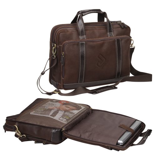 -. Feature : MADE OF RUSTIC, OIL RUBBED LEATHER / TSA-FRIENDLY COMPUTER SLEEVE FOR 17" LAPTOP / MESH POCKET AT BACK SECTION, DUAL HANDLES AND DETACHABLE SHOULDER STRAP / PADDED INSIDE FRONT COMPARTMENT FOR TABLET / SIZE: 16½"W x 12¾"H x 6½"D