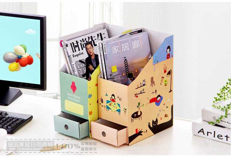 Cute a desktop storage box, environmentally friendly paper, printing lovely patterns, with a drawer, you can incorporate your desktop files, information, magazines and other life items, but also enjoy DIY DIY DIY fun