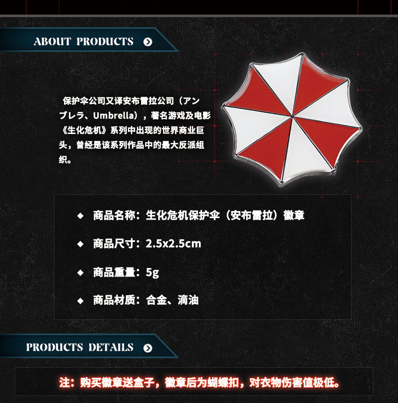漫趣动漫周边游戏周边生化危机安布雷拉Resident Evil金属徽章