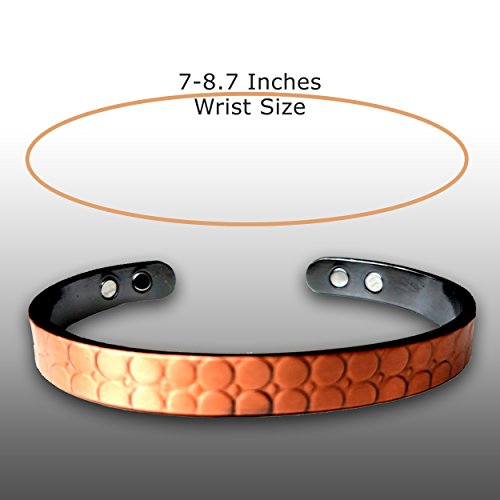 Magnetic Therapy Bracelets Do Wonders For The Body For decades magnetic therapy bracelet and magnetic therapy jewelry have been used in therapy due to the amazing health benefits they provide This magnetic therapy bracelet has countless uses due to the rare-earth metals and with 4 Neodymium magnets that range from relieving arthritis pain to revitalizing blood circulation This elegant Pure Copper Unisex Rheumatoid Arthritis Bracelet is exactly what you need if you are looking for relief from : * Pain and inflammation associated with Arthritis, Carpal Tunnel, Repetitive Strain Injury (RSI). * Poor circulation associated with Diabetes; Cold hands and feet. * Arthritis healing magnetic copper bracelet that heals and counters fatigue, insomnia, stress anxiety Designed To look Elegant, Stylish and Attractive