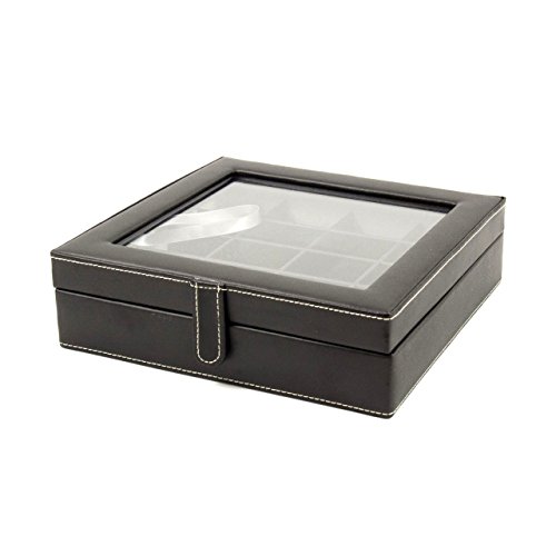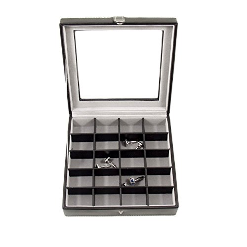 Executive Genuine Black Leather 20 Pocket Cufflink Jewelry Case Box