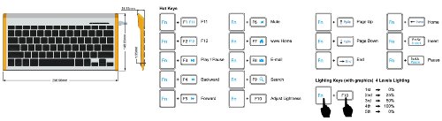 - Feature : Bluetooth 3.0 Technology with up to 30ft Operating Range - Support HID (Human Interface Device) / 10"x5" Portable Size (261x129x9mm Dimension) / Durable 1500mA Li-ion Battery / Silent X Type Scissor Keys with stylish chiclet design / Backlit White LED Feature