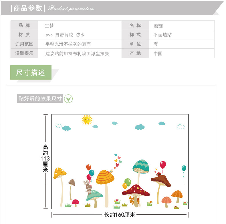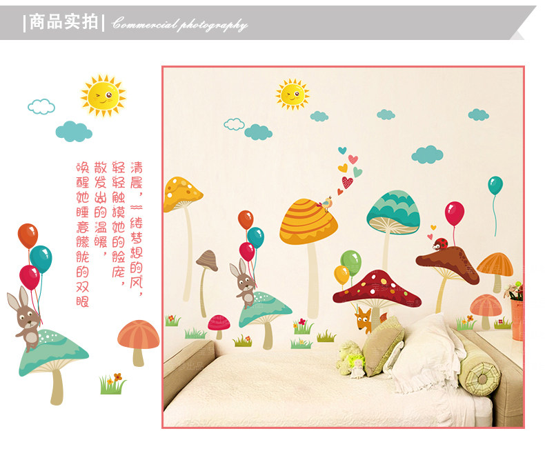 卡通儿童房彩色蘑菇装饰品墙贴纸可爱宝宝卧室幼儿园背景墙纸贴画