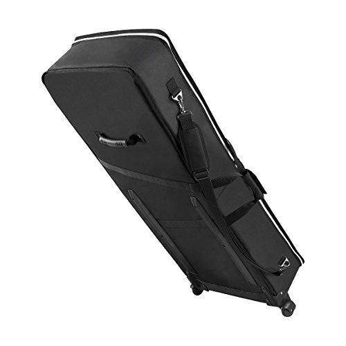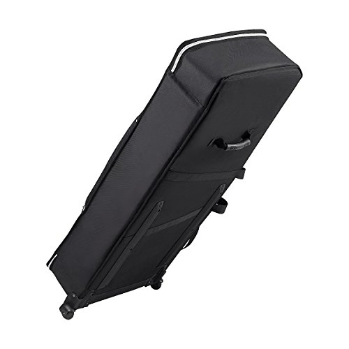 -. Feature : Super tough, ballistic quality exterior and interior Thick foam interior protects and insulates instrument from temperature changes Roomy front pocket with additional accessory pouch Adjustable, padded shoulder strap with metal hardware Tough rubber handle with contoured, comfortable grip Durable side-rails for damage-resistant transport up and down stairs, stages, etc. Built-in wheels make moving your keyboards easy Extra rubber handle optimally placed for balanced rolling