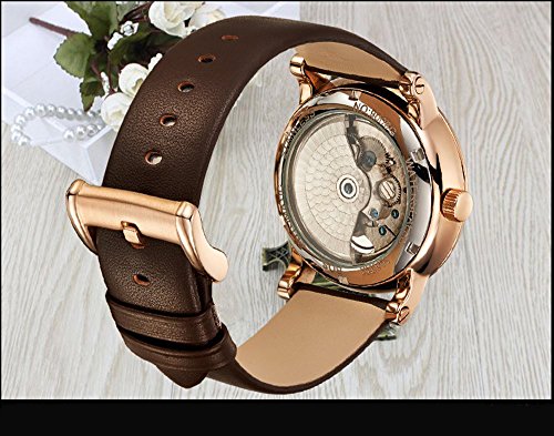 -. Title : BOS Men's Skeleton Automatic Mechanical Watch Waterproof Stainless Steel Case Calfskin Band 9006