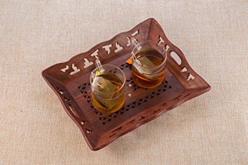 This handcrafted tray is made of high quality Indian rosewood which is stronger, resistant to decay and termites. This natural tray has food-grade finish with no artificial polish. Dimension: 15 x 10 x 1.8 inch