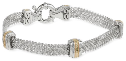 -. Title : Bronze and 18k Yellow Gold Plated Two-Tone Yellow Diamond Accent Multi-Chain Bracelet, 7.25"