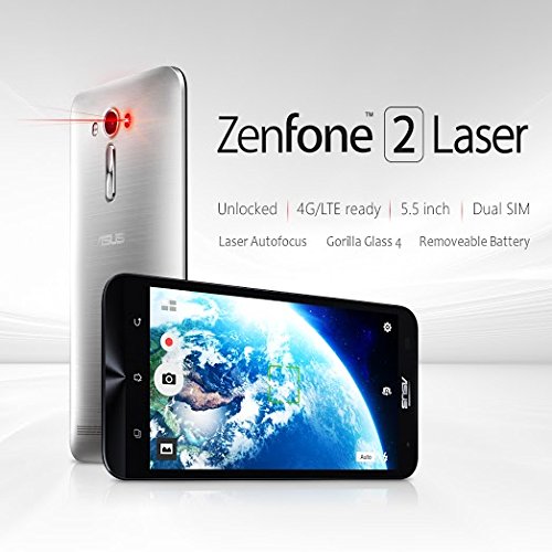 ASUS, ZenFone2 Laser, Silver, 5.5" (1080 x 1920) FHD IPS (403 ppi), Gorilla Class 4, Qualcomm Snapdragon 615 MSM8939, PowerVR G6430, with OpenGL 3.0 support, 3GB LPDDR3, 2 SIM card slots, Micro SIM, GSM/EDGE; HSPA+/DC-HSPA+, FDD-LTE; DSDS, 32GB Storage, Micro SD Card slot support up to 64GB, Integrated 802.11bgn, GPS, AGPS, Bluetooth V4.0 ( EDR + A2DP )/ Bluetooth Apt-X codec Android Lollipop 5.0Feature