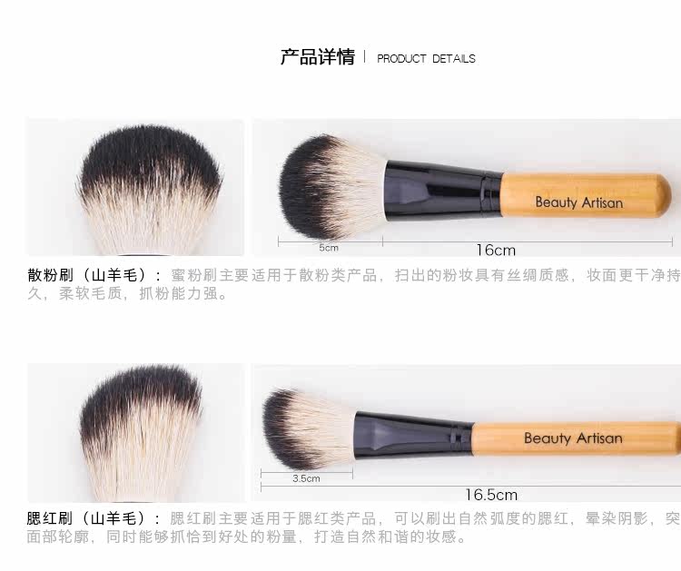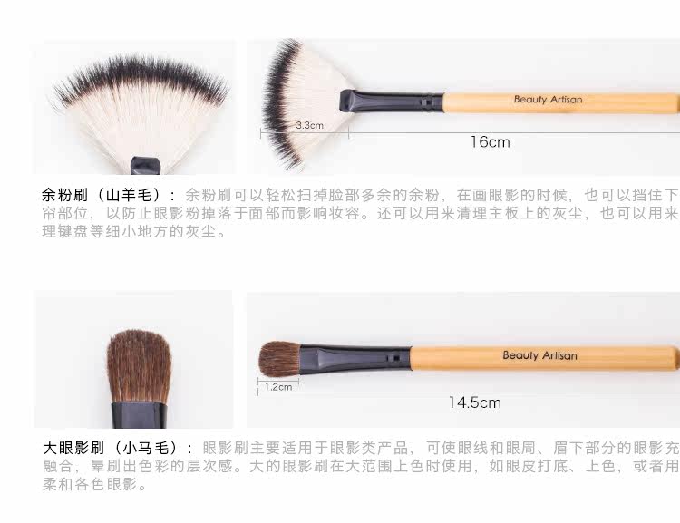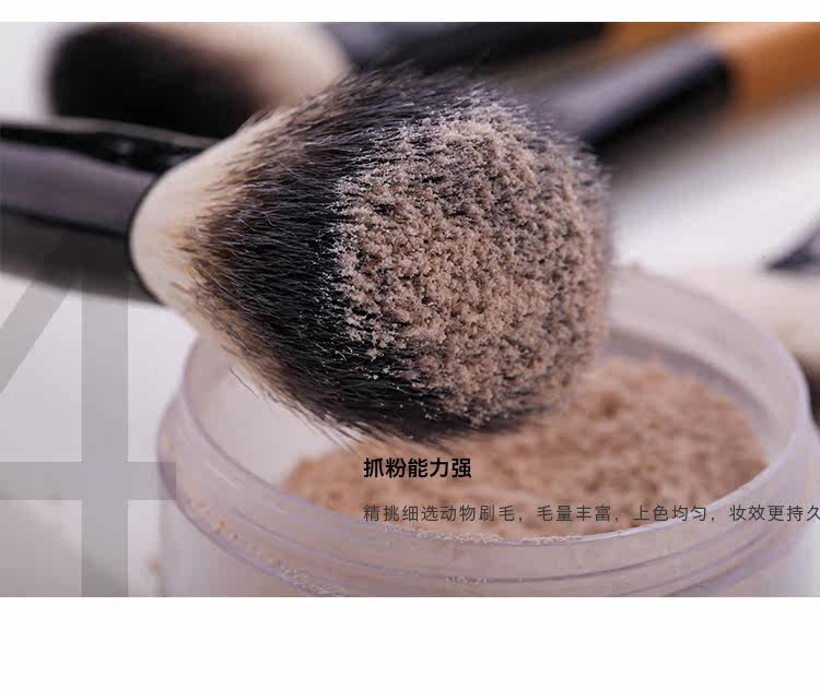 温馨提示:因为这套刷子有几支刷子是羊毛制作, 不可避免会存在味道较重的情况,但是羊毛抓粉力强, 使用感较好,介意味道的亲慎拍~