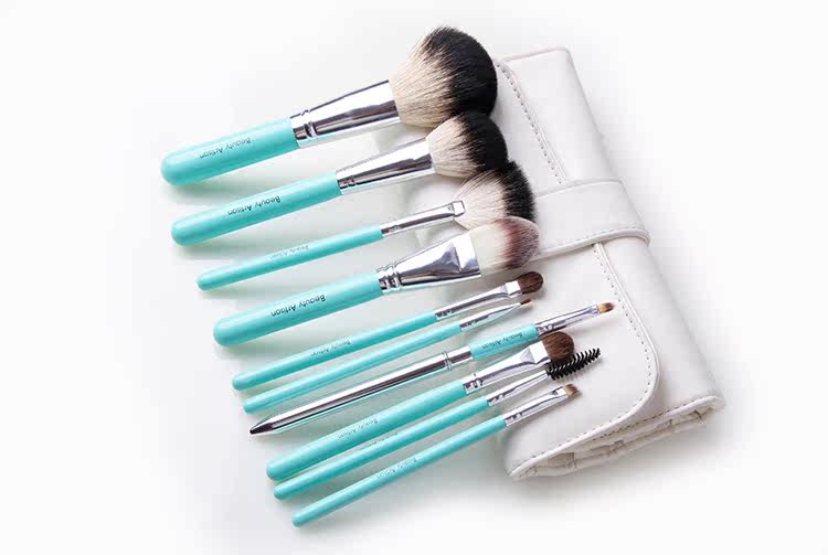 整个外观都是很大气,里面是10支实用性很强的刷子, 眼影刷、腮红刷、粉底刷、眼线刷、唇刷等等样样齐全。 而且,据说是韩国人设计的, 刷子的材质是优质的动物毛,非常的柔软,基本上不会掉毛什么的, 抓粉力强,上妆感受很舒服。