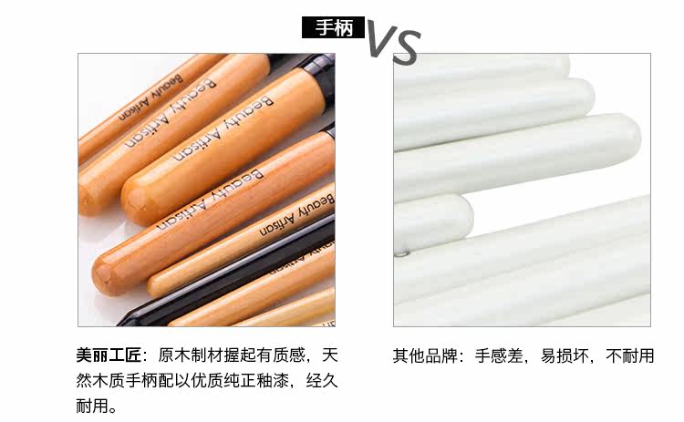 优质天然的烤漆木柄,也不会掉漆什么的,经久耐用,做工精细。 总之,这个价格买这一套非常的划算。 尤其是适合化妆初学者哦~ 不过呢,达达觉得即使是迪*奥,香奈*儿等这种大牌价格上百的刷子, 也会有掉浮毛的时候,用起来也就那样啦。