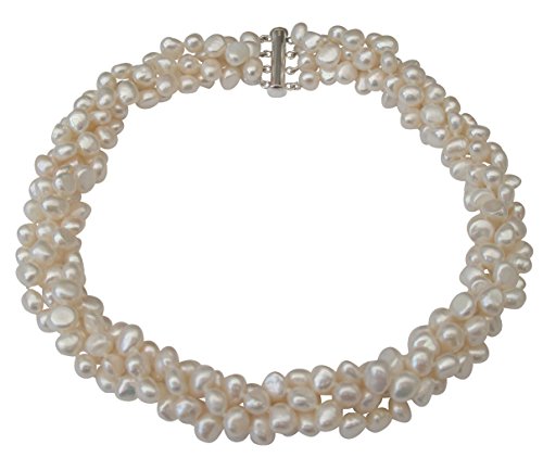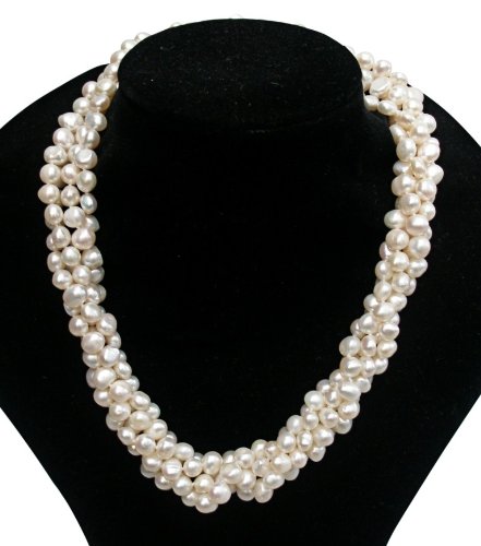 A popular white chunky four strand necklace featuring attractive 6-8mm baroque Cultured Pearls set on a sliding silver (925) clasp. The Cultured Pearls have very good lustre and the necklace is ideal for fashion, birthdays, informal/formal, valentines, weddings and anniversaries.the length of the necklace will vary depending on how much it is twisted and typically is between 45-47cm twisted or 49cm untwisted. It comes in a pretty pouch with a gift card and care of your Cultured Pearls guide. A matching bracelet is also available. We pride ourselves on our excellent service, quality and speed of delivery. All our Cultured Pearl jewellery features genuine Cultured Pearls which are carefully selected by us.Feature