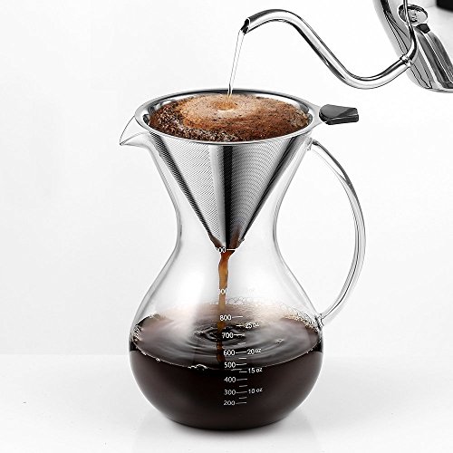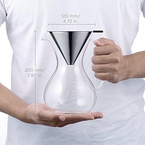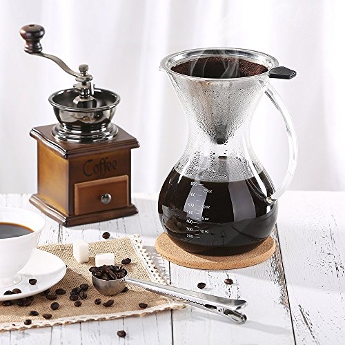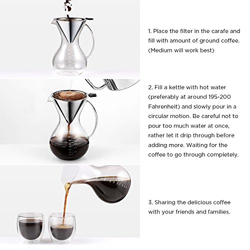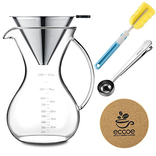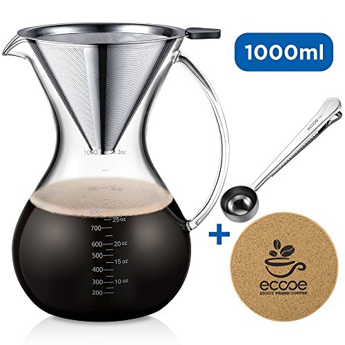What You Get Ecooe Pour-over Coffee Sharing Carafe, stainless steel filter, measuring spoon, cork mat, cleaning brush, 18-month hassle-free warranty, unconditional refund, and lifetime friendly customer service. 0