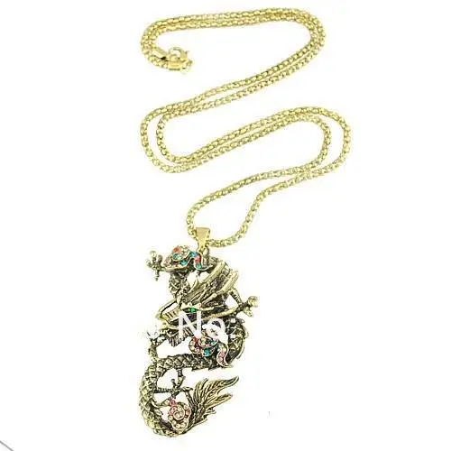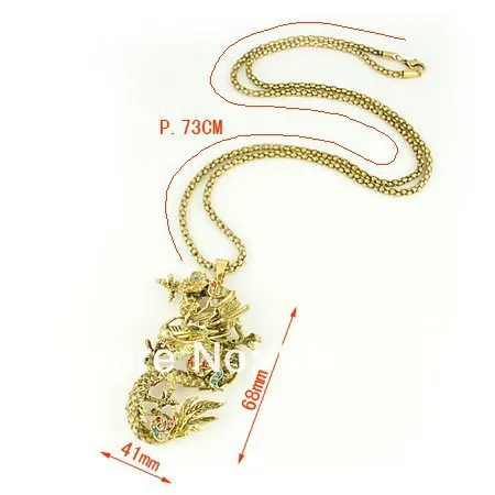 Big Promotion Fashion Jewelry Chinese Style Dragon Pendant Long Sweater Necklace