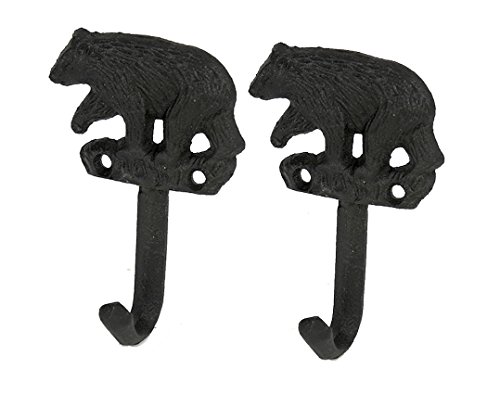 - Set of 2 heavy duty cast iron black bear design wall hook, coat hook, utility hook, towel hook.
