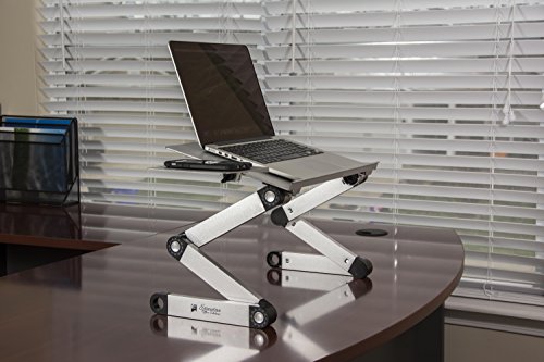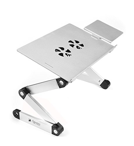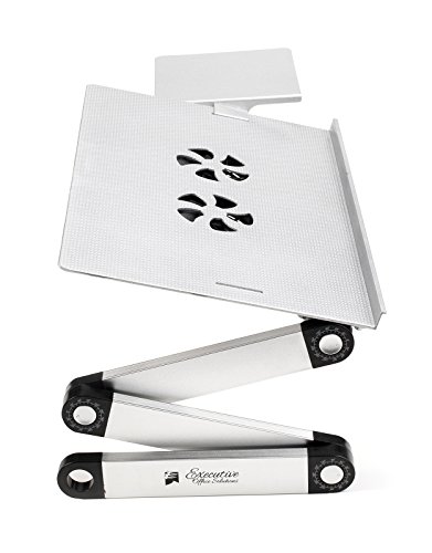 -. Title : Executive Office Solutions Portable Adjustable Aluminum Laptop Desk/Stand/Table Vented w/CPU Fans Mouse Pad Side Mount-Notebook-Macbook-Light Weight Ergonomic TV Bed Lap Tray Stand Up/Sitting-Silver