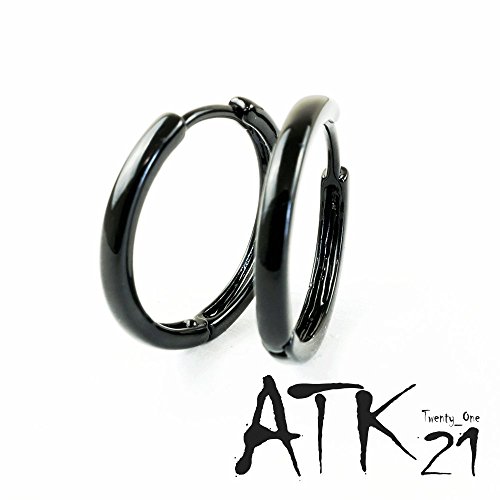 -. Title : [ATK21] 両耳用(2個セット) シンプル フープ リング ピアス ブラック メンズ レディース ユニセックス アクセサリー