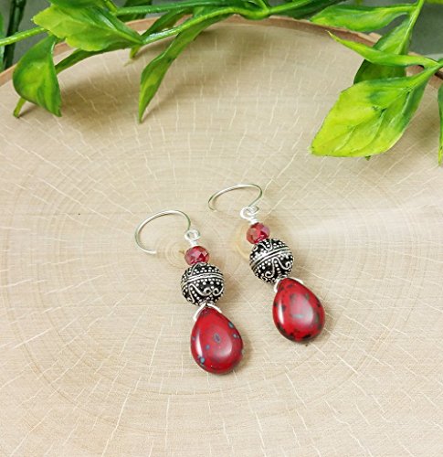 -. Title : 1 Pair of Elegant Red Tear Drop Bali Sterling Silver Earrings