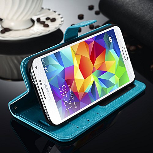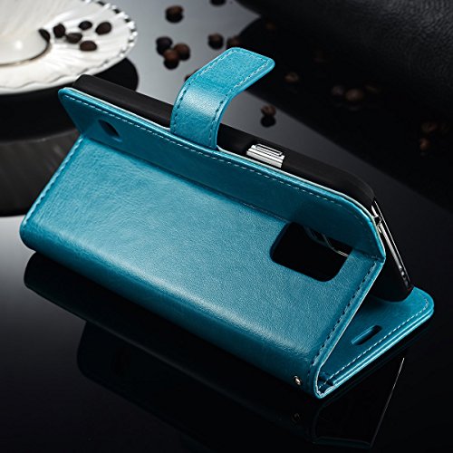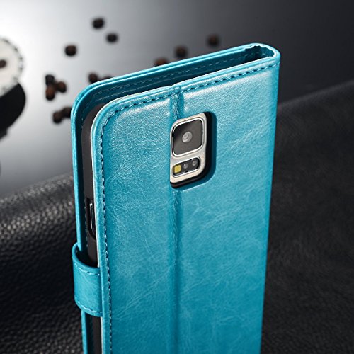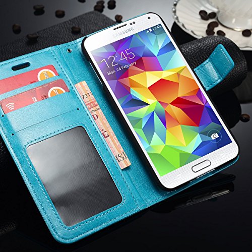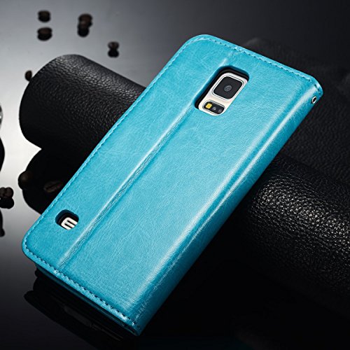 Walle S5 Flip Case, Galaxy S5 Wallet Case Leather Case for Samsung S5 Protective Cover Case (Blue)