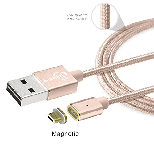 SweetLF Magnetic USB Cable High Speed Sync and Quick Charging Core with LED Status Display Support One - Handed Operation Inside the Car for Micro USB Devices, Champagne