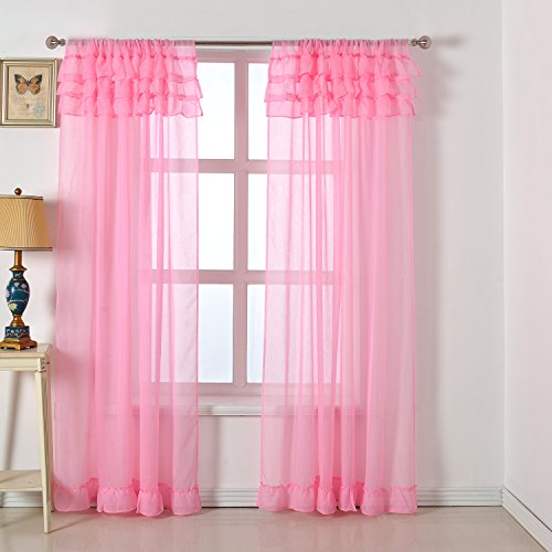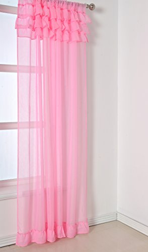 AMAZLINEN Crushed Voile Ruffle Curtains are perfect for baby nursery,little girl's room, perfect for that 'whimsical/shabby chic' look! AMAZLINEN ruffle curtain diffuse harsh light, making the room soft and lovely on the brightest of days, gives baby or kids room a nice glow without blocking the light or view. • Package contains 2x Ruffled Curtain Panels • Ruffle Curtain has a 3.5 inch Rod Pocket on Top for easy hanging with any standard curtain rod. Material: 100% Polyester crushed voile Care Instructions: Machine washable with mild soap and warm water. Delicate cycle. Do not bleach. Hang to dry.Feature