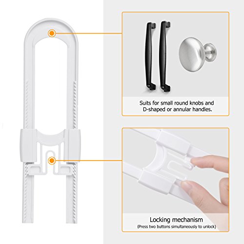 - 【WIDE APPLICATION】The multifunctional child proof locks can work very well with most cabinets, cupboards, side-by-side refrigerators with mushroom-shaped knobs, D-shaped or round door handles.