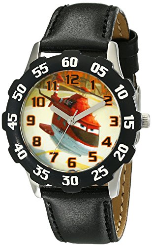 -. Binding : Watch -. Brand : Disney -. Color : Black -. Department : boys -. EAN : 0843231081611 -. Feature : Round Stainless Steel Watch with Disney's Blade Ranger character on dial. / Meets or exceeds all US Govt requirements and regulations for Children's watches. / Recommended for Ages 7-12 years old. / Accurate Japanese Quartz movement, scratch resistant mineral crystal, leather strap. / Water Resistant to 99 feet: withstands rain and splashes of water, but not showering or submersion. / 1 Year Limited Manufacturers Warranty -. Label : Disney-Roll up -. Manufacturer : Disney-Roll up -. Model : W001988 -. MPN : W001988 -. PackageQuantity : 1 -. PartNumber : W001988 -. ProductGroup : Watch -. ProductTypeName : WATCH -. Publisher : Disney-Roll up -. Studio : Disney-Roll up -. Title : Disney Kids' W001988 Planes Analog Watch With Black Synthetic Leather Band -. UPC : 843231081611