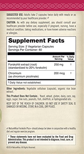 -. Binding : Health and Beauty -. ProductGroup : Health and Beauty -. ProductTypeName : HEALTH_PERSONAL_CARE -. Title : NatureWise Forskolin Plus+ for Weight Loss with Chromium for Healthy Blood Sugar Support, Coleus Forskohlii Supplement, 250 mg, 120 count