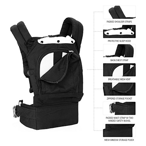 -. Feature : ?TOP RATED, THE BEST BABY SLING: New Parents, Veteran Parents, Grandparents & Guardians agree we offer the best baby carrier on Amazon. The key to it is in the comfort. This carrier will not strain your back as it redistributes your baby's weight and alleviates pressure. The padded waist strap and thick arm straps also ensure comfort, even when you're wearing your baby for hours. / ?SO COMFY YOUR BABY WILL SLEEP IN IT: A vented, mesh window allows a cool breeze on your baby's back and keeps him/her from getting too hot. The carrier itself is made of cotton, so it is soft and not rough on the skin like many tough polyester slings. It features a sleep hood that protects your baby's head from the elements. It also folds easily into the diaper bag and is easy to clean in the washing machine. / ?VERSATILE 3-IN-1 DESIGN: Does your baby like to be on your back? On your chest? Or on your hip? Three carry positions let you discover the most comfortable way for your baby to experience the world with you. We all know that little ones can be finicky and indecisive. The versatility this child sling offers allows you to carry your baby in whatever way works best for the day. From baby backpack to casual hipster, we've got you covered. / ?YOUR BABY IS SAFE: And isn't that the most important thing. The safe and sturdy 3-prong buckles keep your baby securely in place. The elastic safety loops are a failsafe to ensure your baby protection even if you accidentally don't clip the buckle correctly. We've also put this carrier through the proper safety testing so it is ASTM F2236 - 14 Certified, CPSIA Sec.101 & Cal. Prop 65 Passed. / ?GREAT BABY GIFT IDEA: Someone you know having a baby? You know they'll want a carrier, as it is easily one of the most convenient parenting accessories around. Get yours today. We know you'll love it. NOTE: THE ERGONOMIC DESIGN OF THIS CARRIER IS NOT INTENDED FOR OUTWARD FACING CARRY!