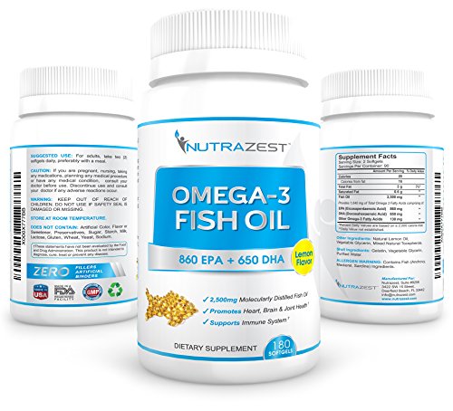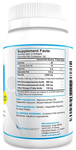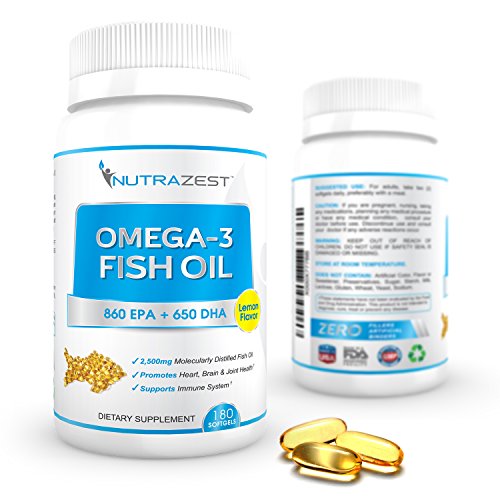 - Title : Nutrazest Premium Omega 3 Fish Oil - 2,500mg Lemon Flavored, Cold Pressed, Triple Strength Fish Oil Capsules - 860mg EPA & 650mg DHA for Heart, Joints, Brain, Vision & Immunity Benefits - 180 Softgels