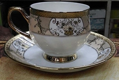 -. Title : Famacart Home Decor Tableware Serving Gold Tea Cups Coffee Cups Set Of 6 Cups And Saucers Standard Brown