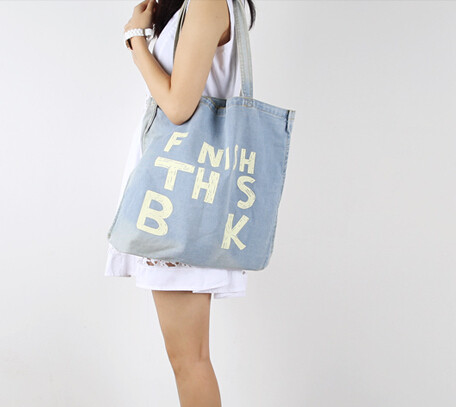 2016韩国牛仔女包单肩包包布包大容量环保购物袋学生帆布单肩书包