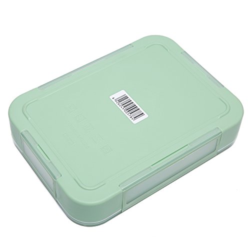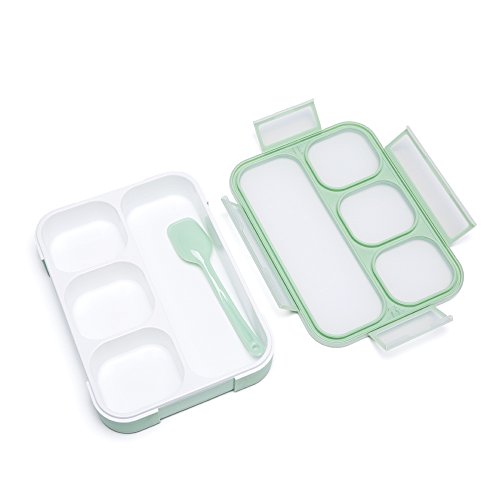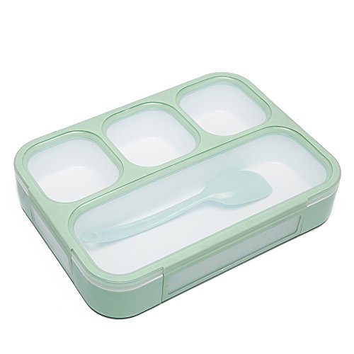 Japanese Lunch Bento Box Leak-Proof Sealing Food Container - 4 Compartments With a Spoon - BPA-free Microwave-Safe Boxes (Green)