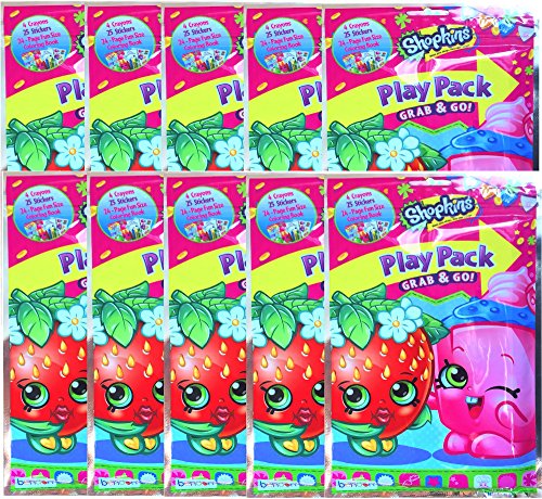 -. Feature : As Pictured / Shopkins Play Pack Grab & Go Children's Party Favor Bundle Edition Pack of 10 / PERFECT PARTY FAVOR SETS ! / Each play pack contains 4 crayons 25 stickers 24 page fun size coloring book !