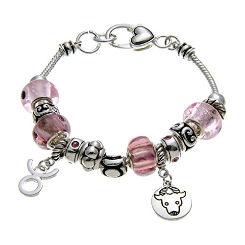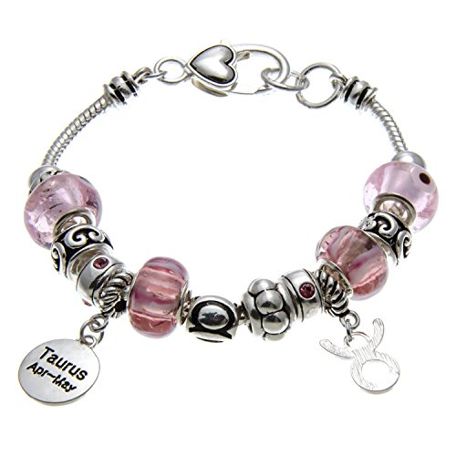 -. Feature : Taurus charm bracelet for birthdays AP.R.Il 21-May20 / Has a heart shaped lobster claw clasp and will fit up to a 7 inch wrist / Imported