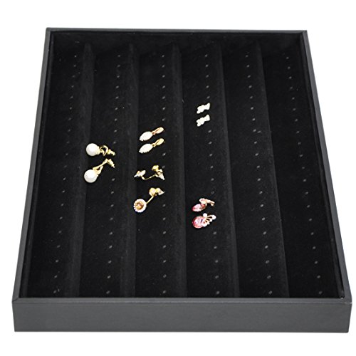 Stackable Black PU Leather Jewelry Tray Showcase Display Storage Organizer Functional