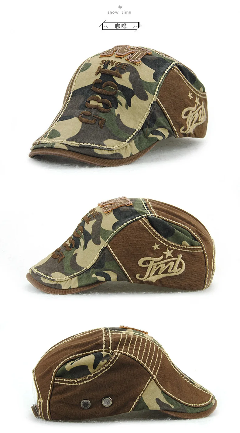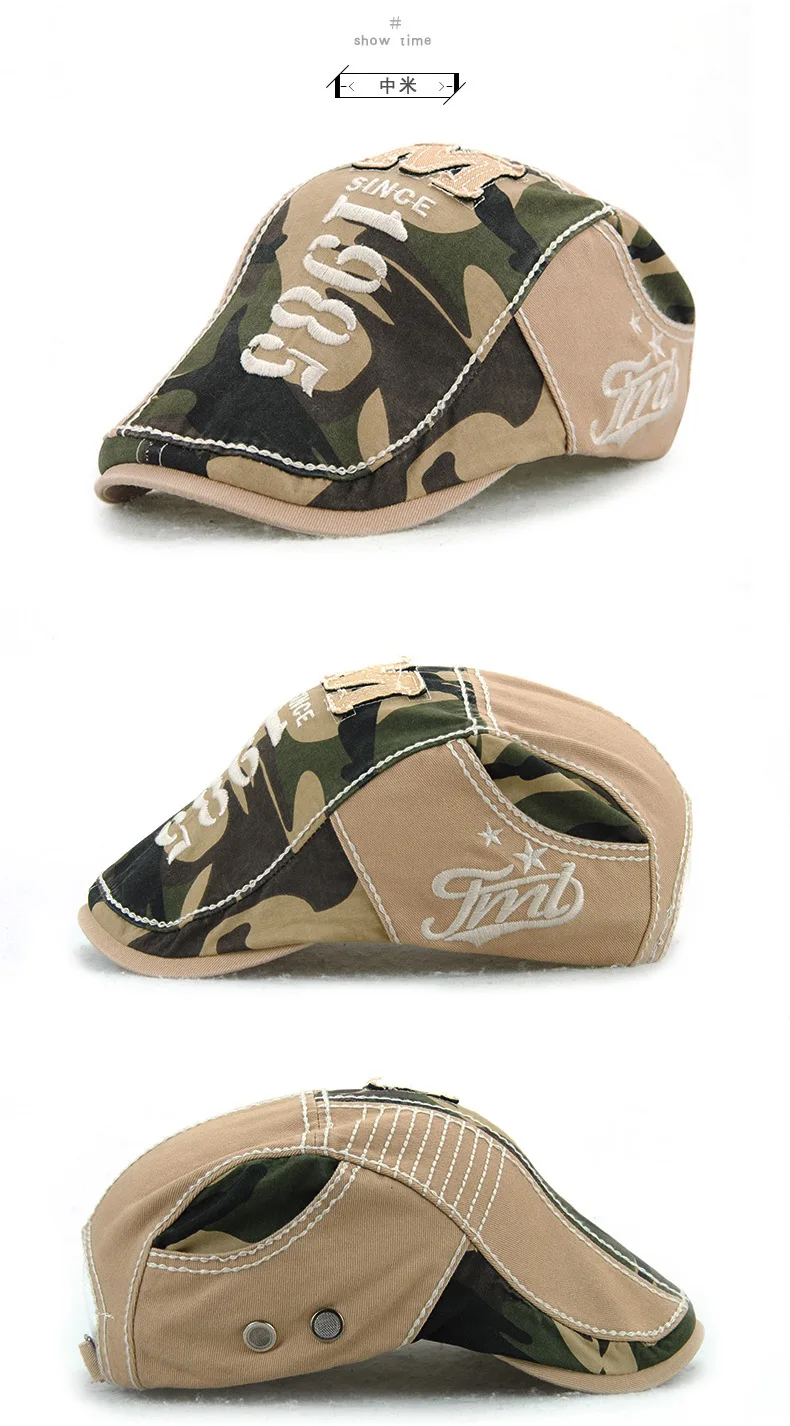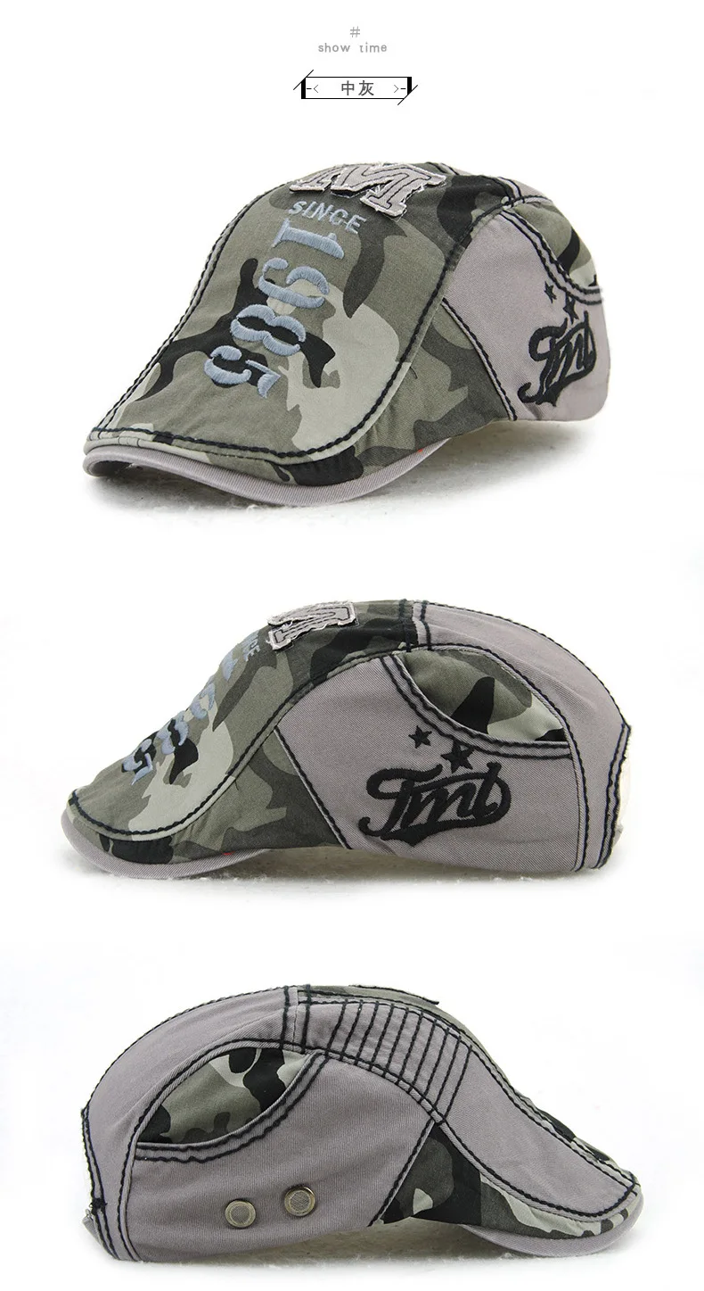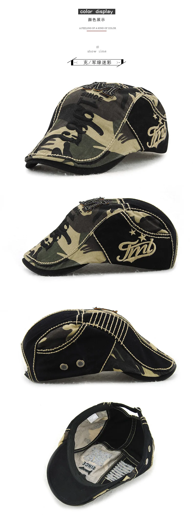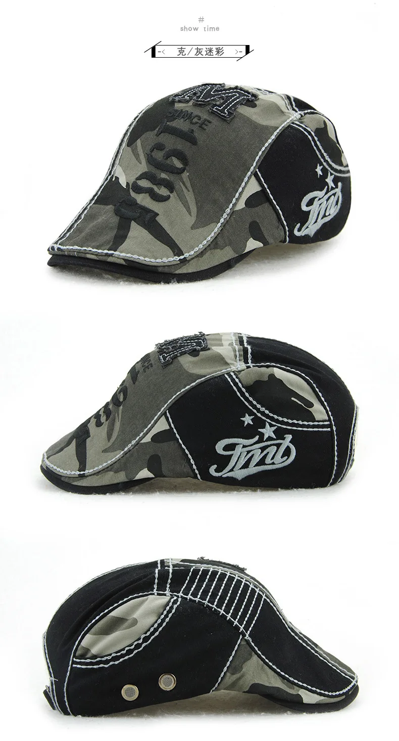 | [해외]2017 새로운 패션 성인 모자 바느질 위장 베레모 남성 모자 여성 야외 레저 자수 편지 Casquette |