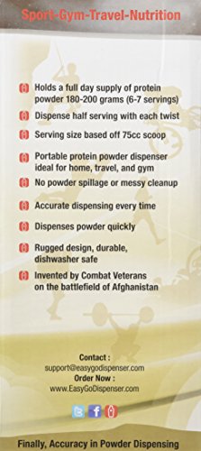 Holds a full day supply of protein powder 180-200 grams