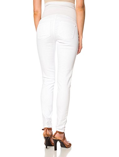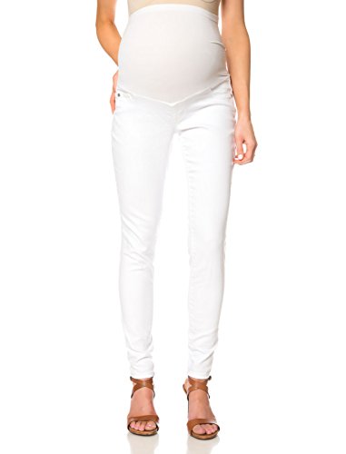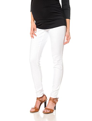 A PEA IN THE POD JEANS MATERNITY JEANS SECRET FIT BELLY (R) US Patent Nos RE43563 RE43531 7814575 and 7900276 WHITE DENIM SKINNY LEG 5 POCKET 31 INCH INSEAM COTTON / SPANDEX PLAIN WEAVE DENIM MACHINE WASHABLE IMPORTEDFeature