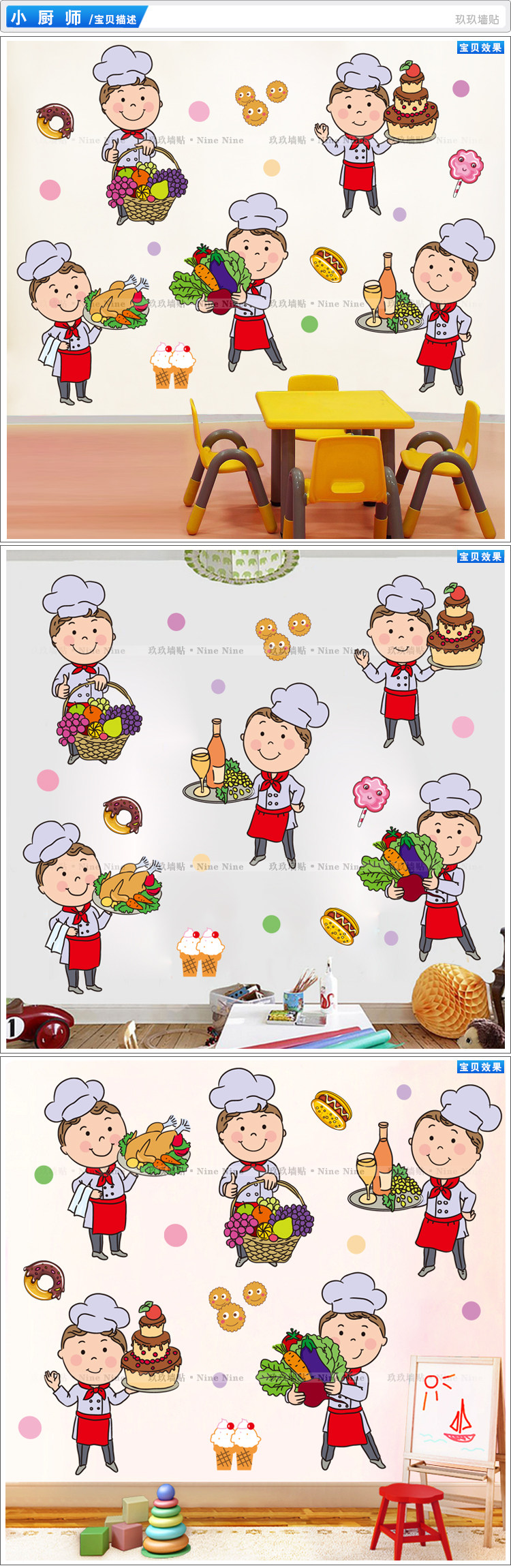幼儿园小学学校儿童餐厅墙面装饰墙贴卡通厨师爱劳动动手贴纸贴画