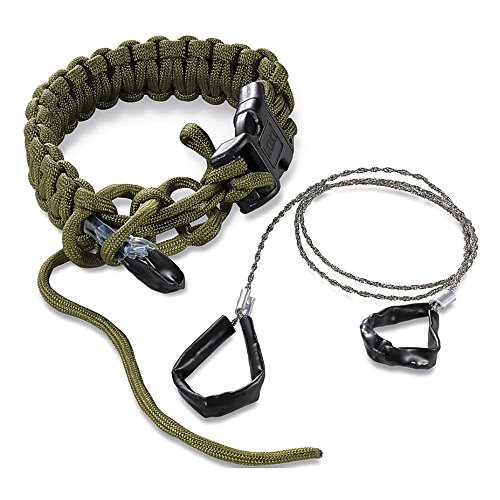 Studio : Columbia River Knife and Tool (CRKT) Publisher : Columbia River Knife and Tool (CRKT) Binding : Tools Home Improvement Product Description Having a length of cordage along on your next great outdoor excursion is never a bad idea| cleverly adding in a handy cable saw for the unexpected couldn't hurt either. Ken Onion applied his passion for creating useful tools and his personal love of the outdoors, in designing the Onion Survival Para-Saw. It is 8 to 9 foot length (depending on size ordered) of nylon paracord that's braided into a bracelet form?with a plastic encased, tungsten carbide coated wire saw woven into the braided cord. In the emergency survival event that you had to use the cordage and/or wire saw, you simply unravel the bracelet. The Para-Saw paracord survival bracelet uses a quick release buckle to easily secure it on your wrist, or on your gear. Now you can have along two very handy survival tools, in one easy to travel package. Cordage for securing, lashing, or paring down for other uses and an effective wire saw to cut limbs, wood, or any number of things in a survival situation. If you are the type that gets outdoors, be prepared. These are a must have. 0